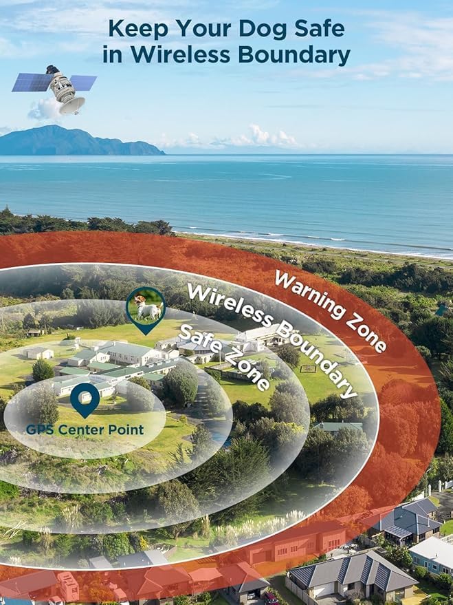 GPS Wireless Dog Fence System, Electric Fence Collar with 3 Correction Modes,Dog Fence for Outdoor Use,Range 65-3290 FT, Waterproof& Rechargeable Pet Containment System for Most Dogs